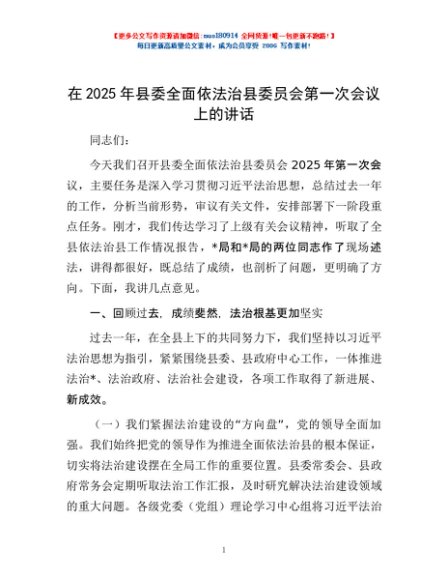 / 在2025年县委全面依法治县委员会第一次会议上的讲话