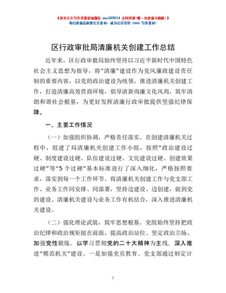 / 区行政审批局清廉机关创建工作总结