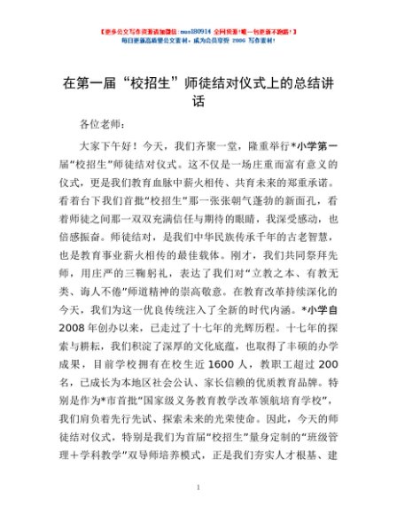 / 在第一届“校招生”师徒结对仪式上的总结讲话