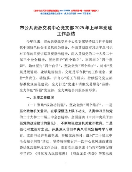 / 市公共资源交易中心党支部2025年上半年党建工作总结