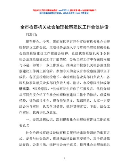 / 全市检察机关社会治理检察建议工作会议讲话