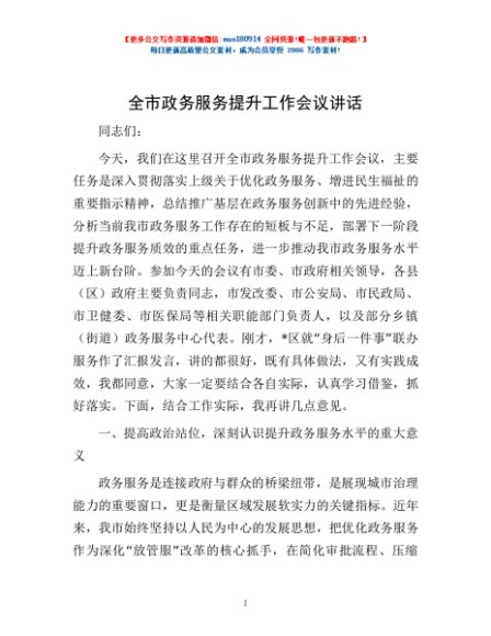 / 全市政务服务提升工作会议讲话