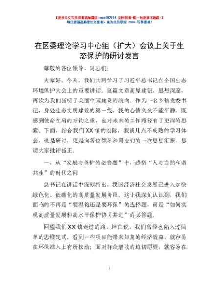 / 在区委理论学习中心组(扩大)会议上关于生态保护的研讨发言