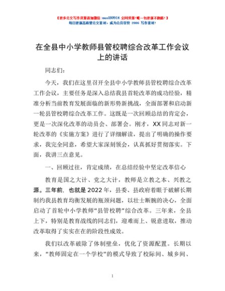 / 在全县中小学教师县管校聘综合改革工作会议上的讲话