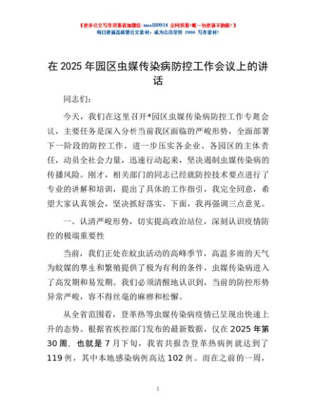 / 在2025年园区虫媒传染病防控工作会议上的讲话