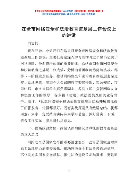 / 在全市网络安全和法治教育进基层工作会议上的讲话