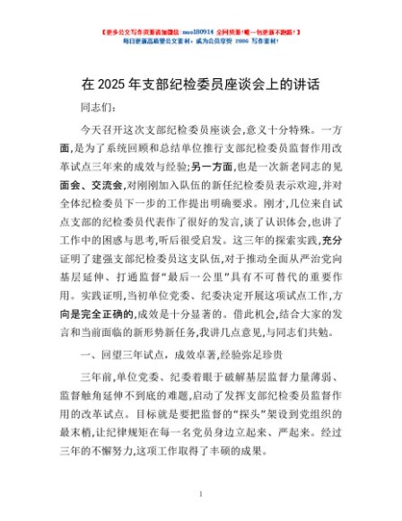 / 在2025年支部纪检委员座谈会上的讲话