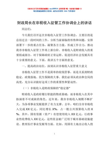 / 财政局长在非税收入征管工作协调会上的讲话