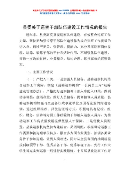 / 县委关于巡察干部队伍建设工作情况的报告