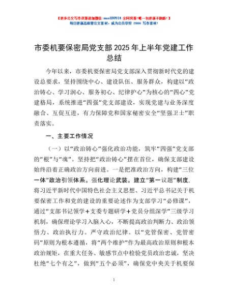 / 市委机要保密局党支部2025年上半年党建工作总结