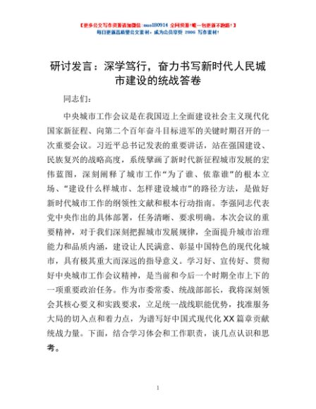 研讨发言:深学笃行,奋力书写新时代人民城市建设的统战答卷