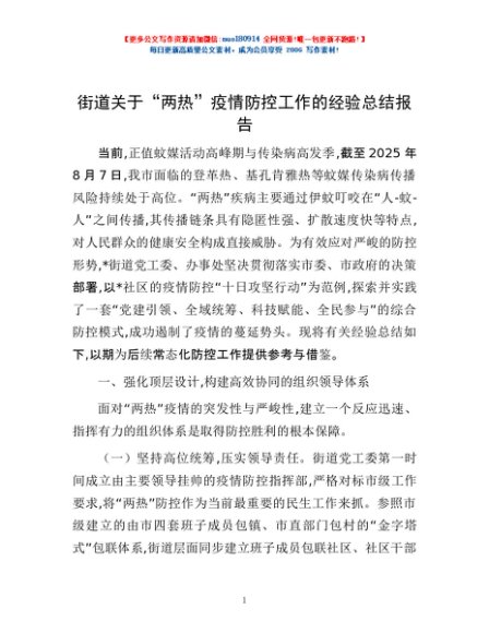 / 街道关于“两热”疫情防控工作的经验总结报告