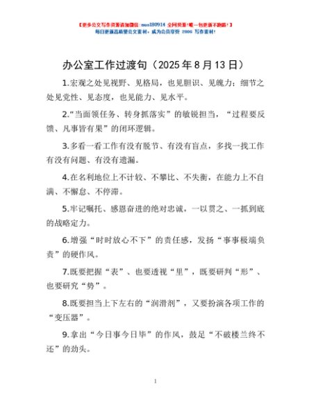/ 办公室工作过渡句(2025年8月13日)