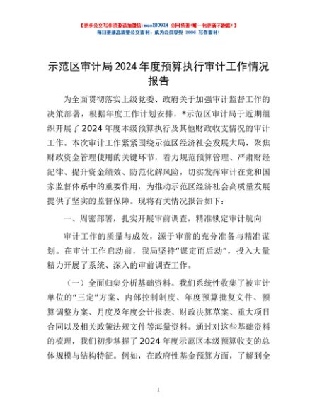 / 示范区审计局2024年度预算执行审计工作情况报告