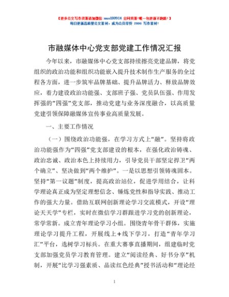 市融媒体中心党支部党建工作情况汇报