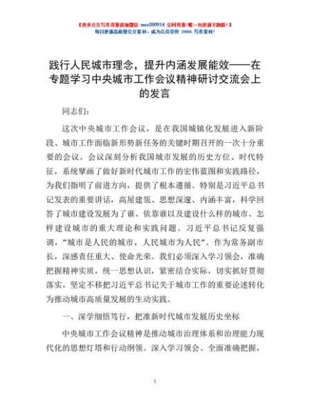 / 践行人民城市理念,提升内涵发展能效——在专题学习中央城市工作会议精神研讨交流会上的发言