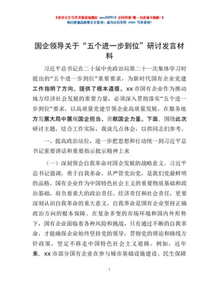 / 国企领导关于“五个进一步到位”研讨发言材料