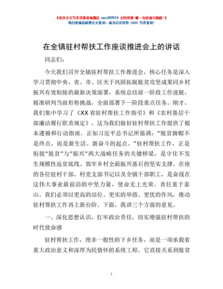 / 在全镇驻村帮扶工作座谈推进会上的讲话