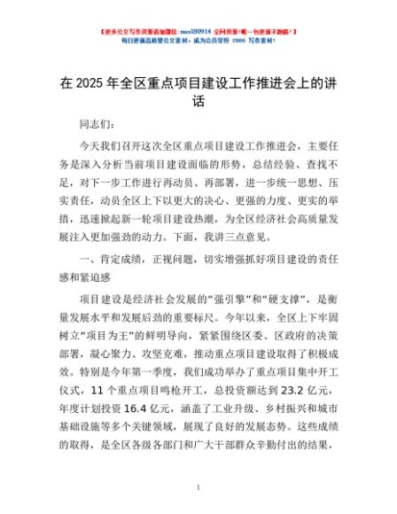 / 在2025年全区重点项目建设工作推进会上的讲话