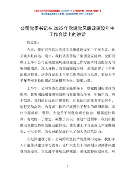 / 公司党委书记在2025年党建党风廉政建设年中工作会议上的讲话
