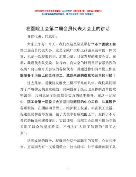 / 在医院工会第二届会员代表大会上的讲话