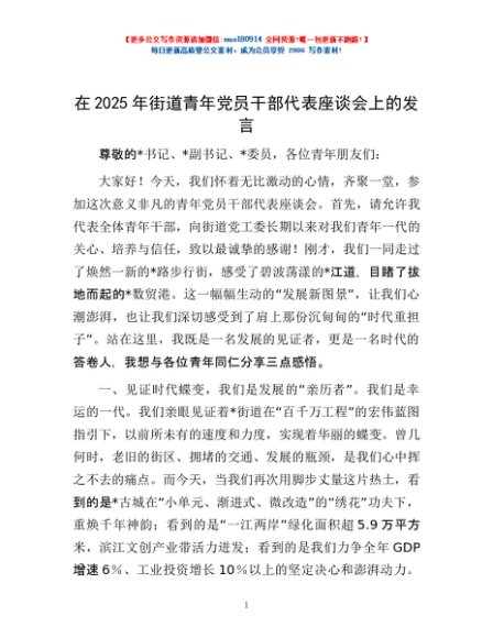 / 在2025年街道青年党员干部代表座谈会上的发言