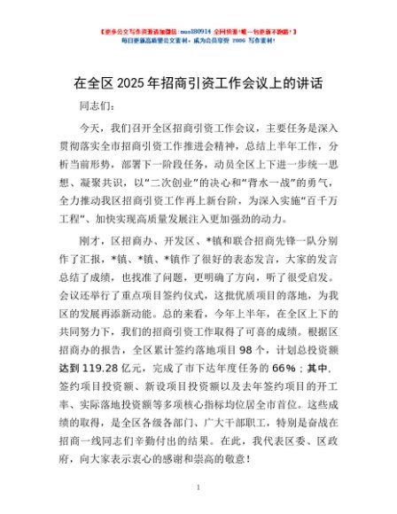 / 在全区2025年招商引资工作会议上的讲话