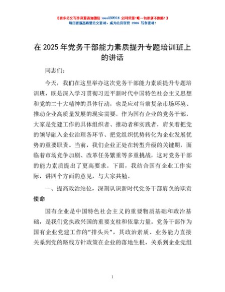 / 在2025年党务干部能力素质提升专题培训班上的讲话