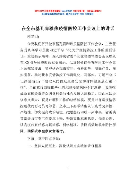 / 在全市基孔肯雅热疫情防控工作会议上的讲话