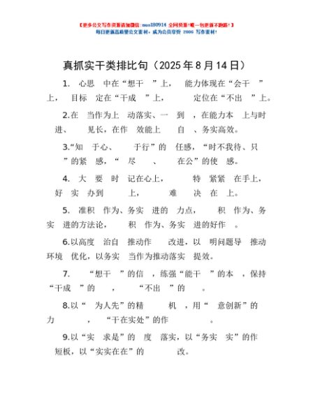 / 真抓实干类排比句(2025年8月14日)