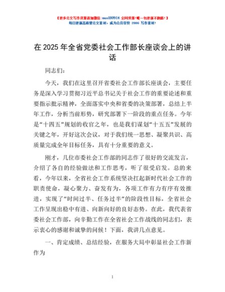 / 在2025年全省党委社会工作部长座谈会上的讲话