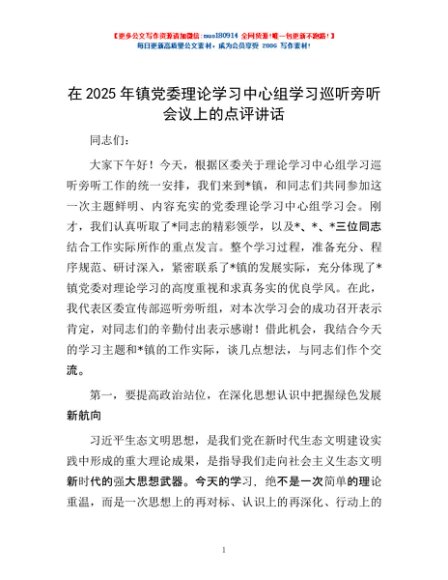 / 在2025年镇党委理论学习中心组学习巡听旁听会议上的点评讲话