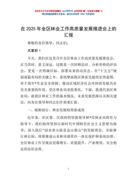 / 在2025年全区林业工作高质量发展推进会上的汇报