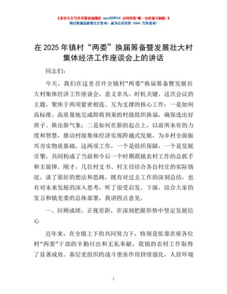 / 在2025年镇村“两委”换届筹备暨发展壮大村集体经济工作座谈会上的讲话