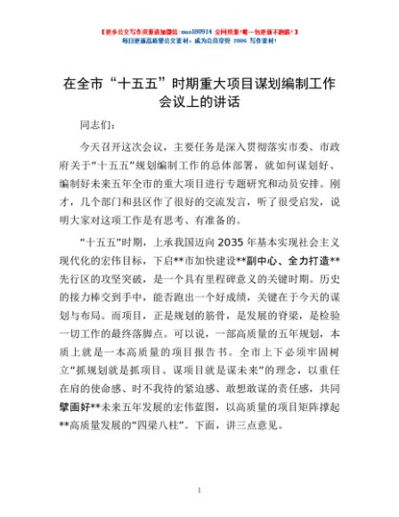 / 在全市“十五五”时期重大项目谋划编制工作会议上的讲话