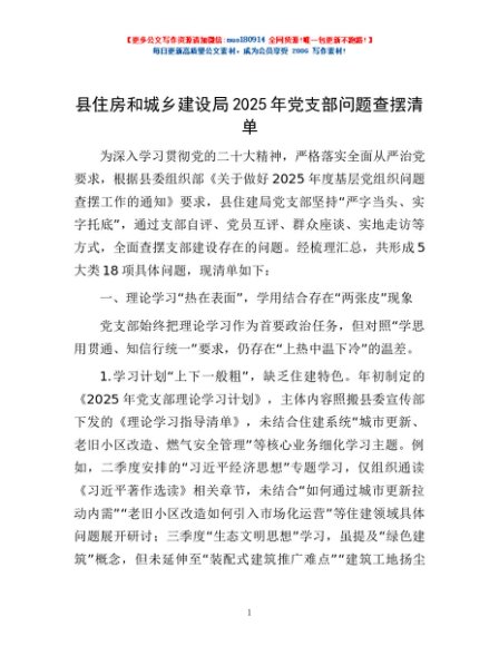 / 县住房和城乡建设局2025年党支部问题查摆清单
