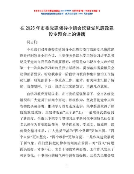 / 在2025年市委党建领导小组会议暨党风廉政建设专题会上的讲话