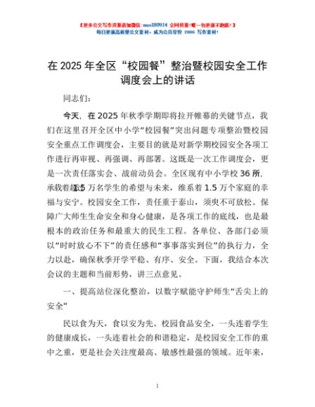 / 在2025年全区“校园餐”整治暨校园安全工作调度会上的讲话