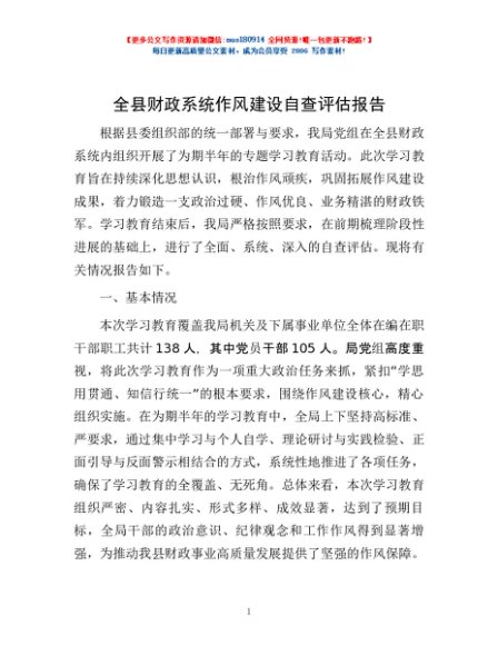 / 全县财政系统作风建设自查评估报告
