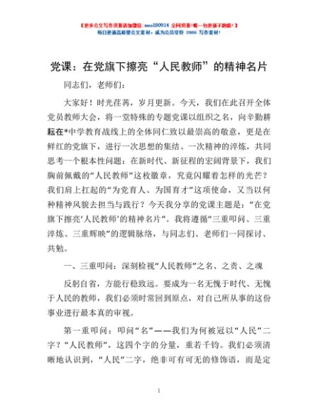 / 党课:在党旗下擦亮“人民教师”的精神名片