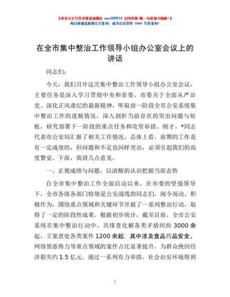 / 在全市集中整治工作领导小组办公室会议上的讲话