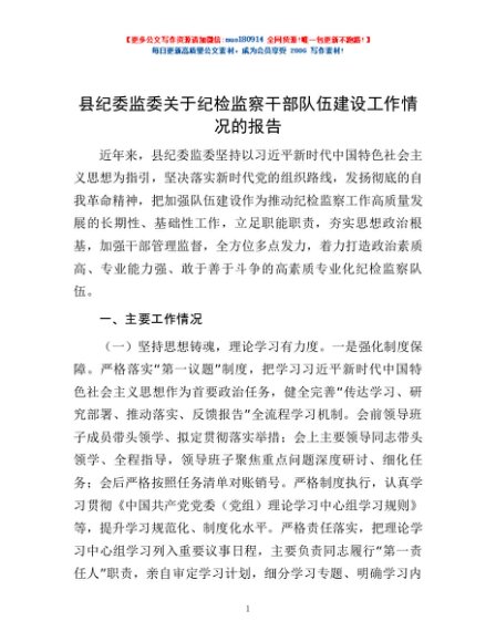 / 县纪委监委关于纪检监察干部队伍建设工作情况的报告