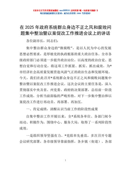 / 在2025年政府系统群众身边不正之风和腐败问题集中整治暨以案促改工作推进会议上的讲话