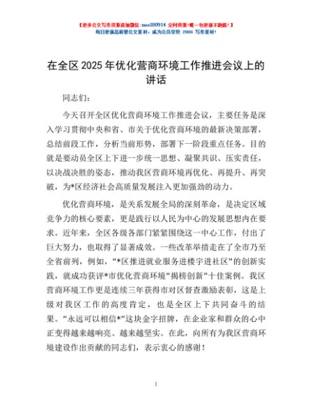 / 在全区2025年优化营商环境工作推进会议上的讲话
