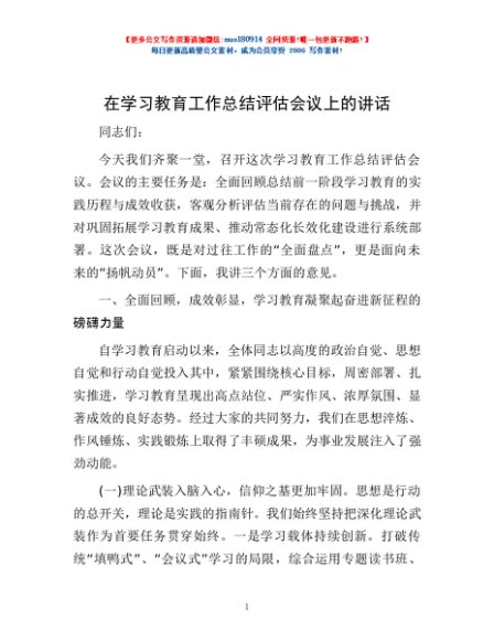 / 在学习教育工作总结评估会议上的讲话