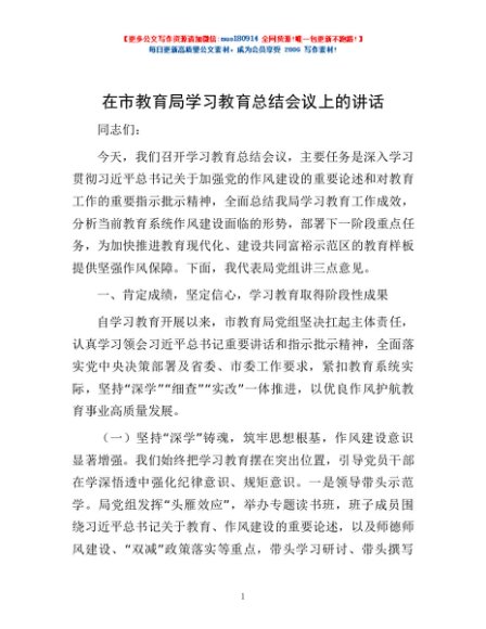 / 在市教育局学习教育总结会议上的讲话