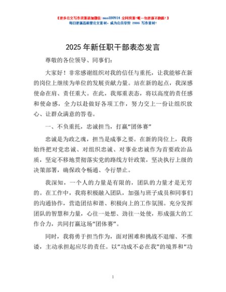 / 2025年新任职干部表态发言