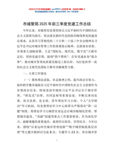 / 市城管局2025年前三季度党建工作总结