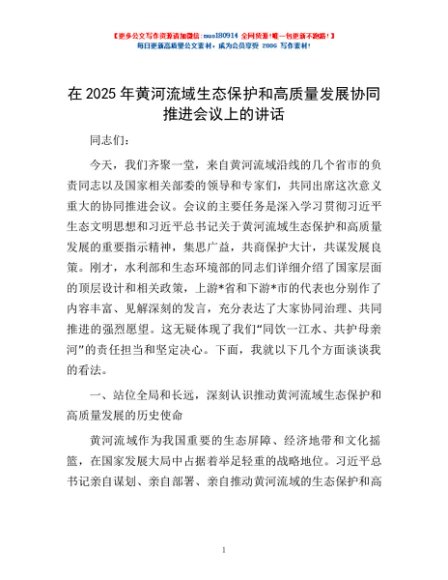 / 在2025年黄河流域生态保护和高质量发展协同推进会议上的讲话