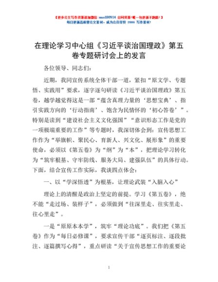 / 在理论学习中心组《习近平谈治国理政》第五卷专题研讨会上的发言